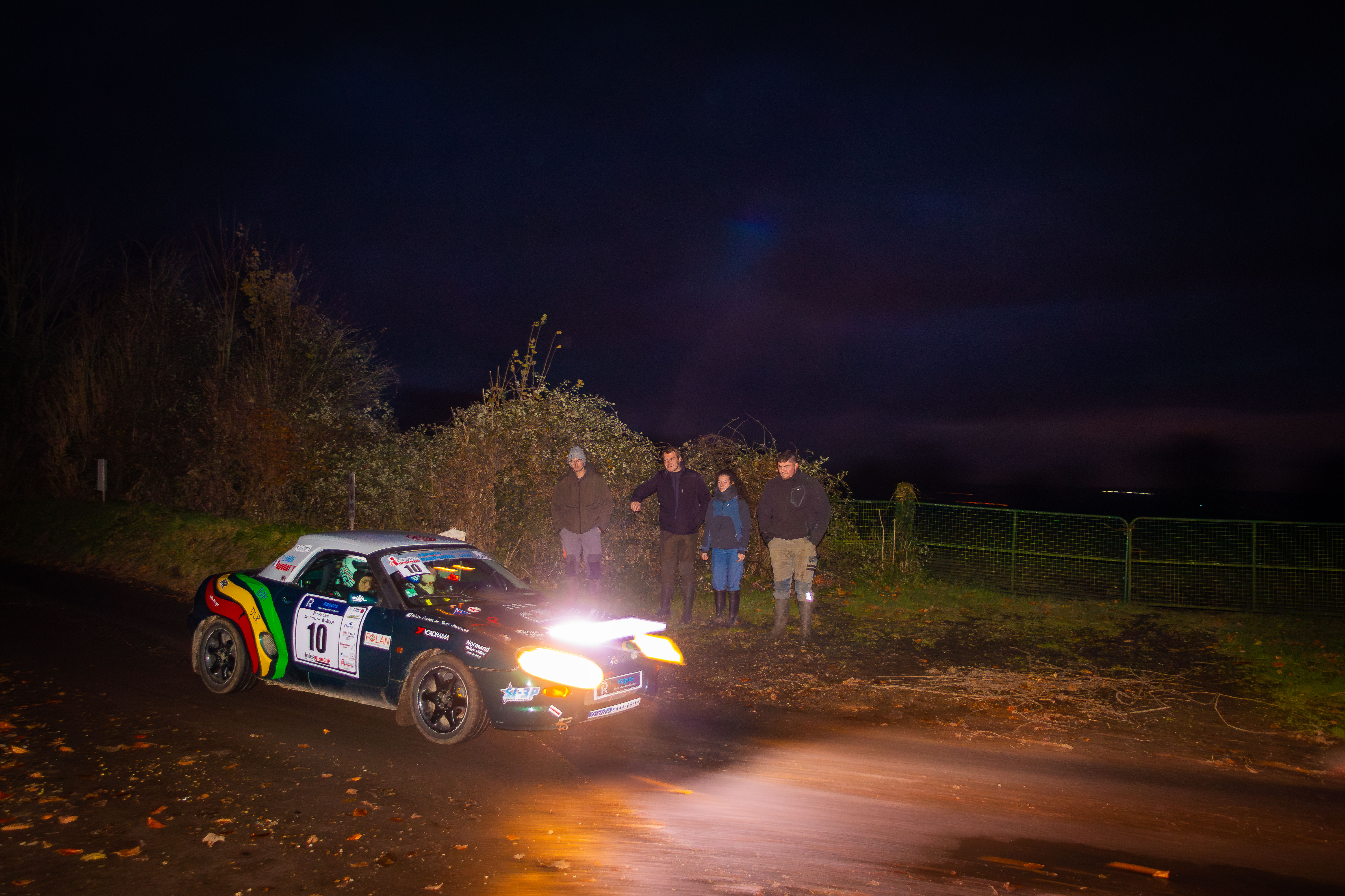 Le soir, ce sera un repas avec des noix de St Jacques. Dimanche matin, le petit déjeuner, on se met en tenue et on part pour Pont L'Evêque. On sort l’auto du parc, puis assistance. Nous partons pour la première ES. Nous sommes au départ, et je fais bien attention car le terrain est glissant, feuilles et humidité. Et c’est parti, quelques virages avant d'entrer
